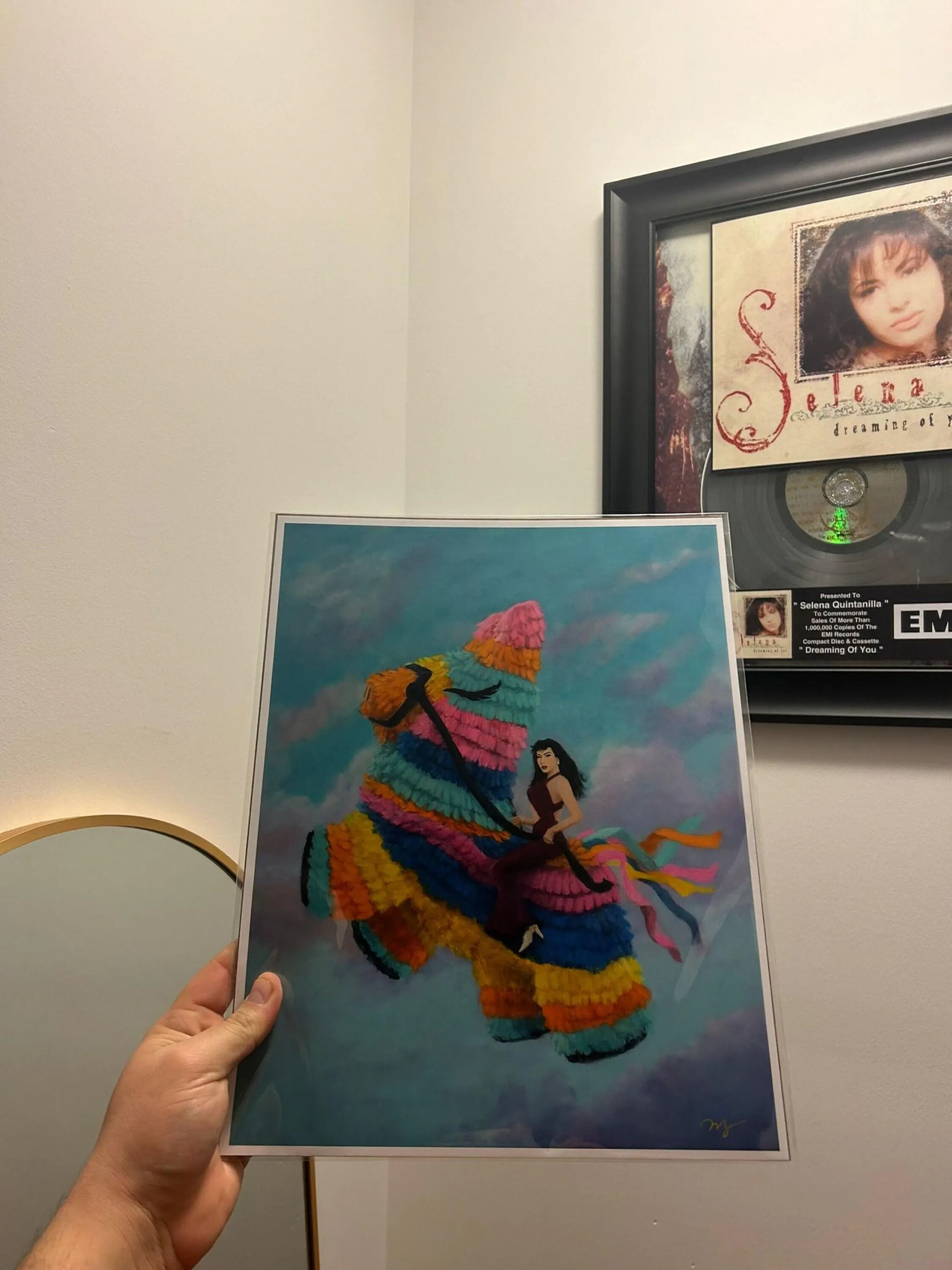 Bring the magic of Selena into your home with this vibrant, beautiful Selena Riding Piñata Art Print!