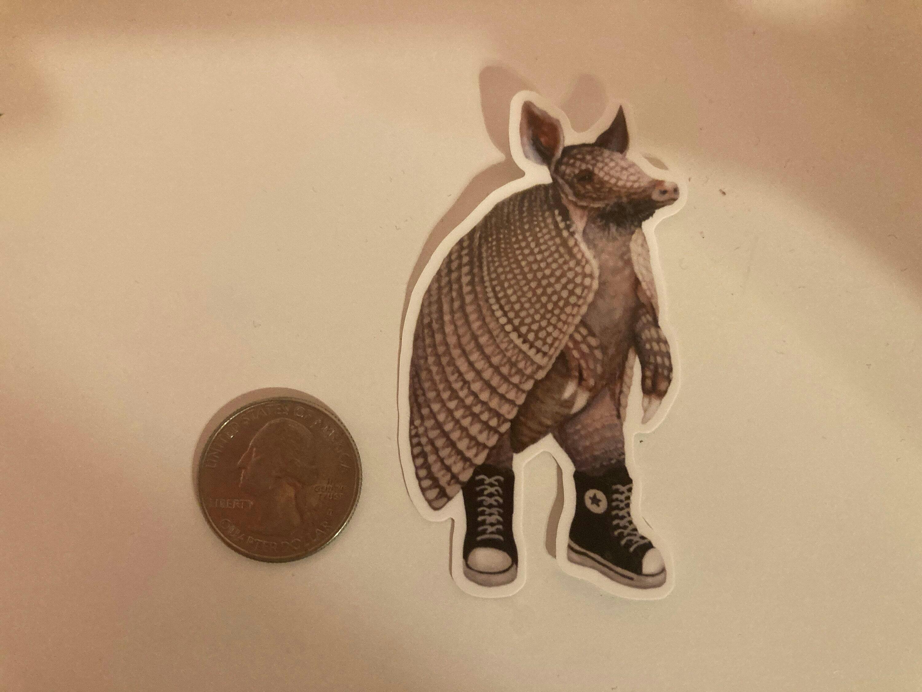 This adorable armadillo wearing converse sneakers sticker is the perfect addition to any car, laptop, or tumbler.